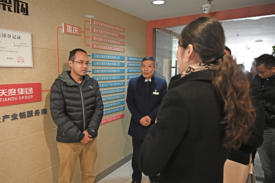 12月17日上午,西山區(qū)委副書記陳凈等領(lǐng)導(dǎo)一行來到天度集團調(diào)研,區(qū)委組織部、區(qū)委辦、區(qū)科學(xué)技術(shù)和工業(yè)信息化局、永昌街道黨工委、云紡科技園等領(lǐng)導(dǎo)陪同調(diào)研。