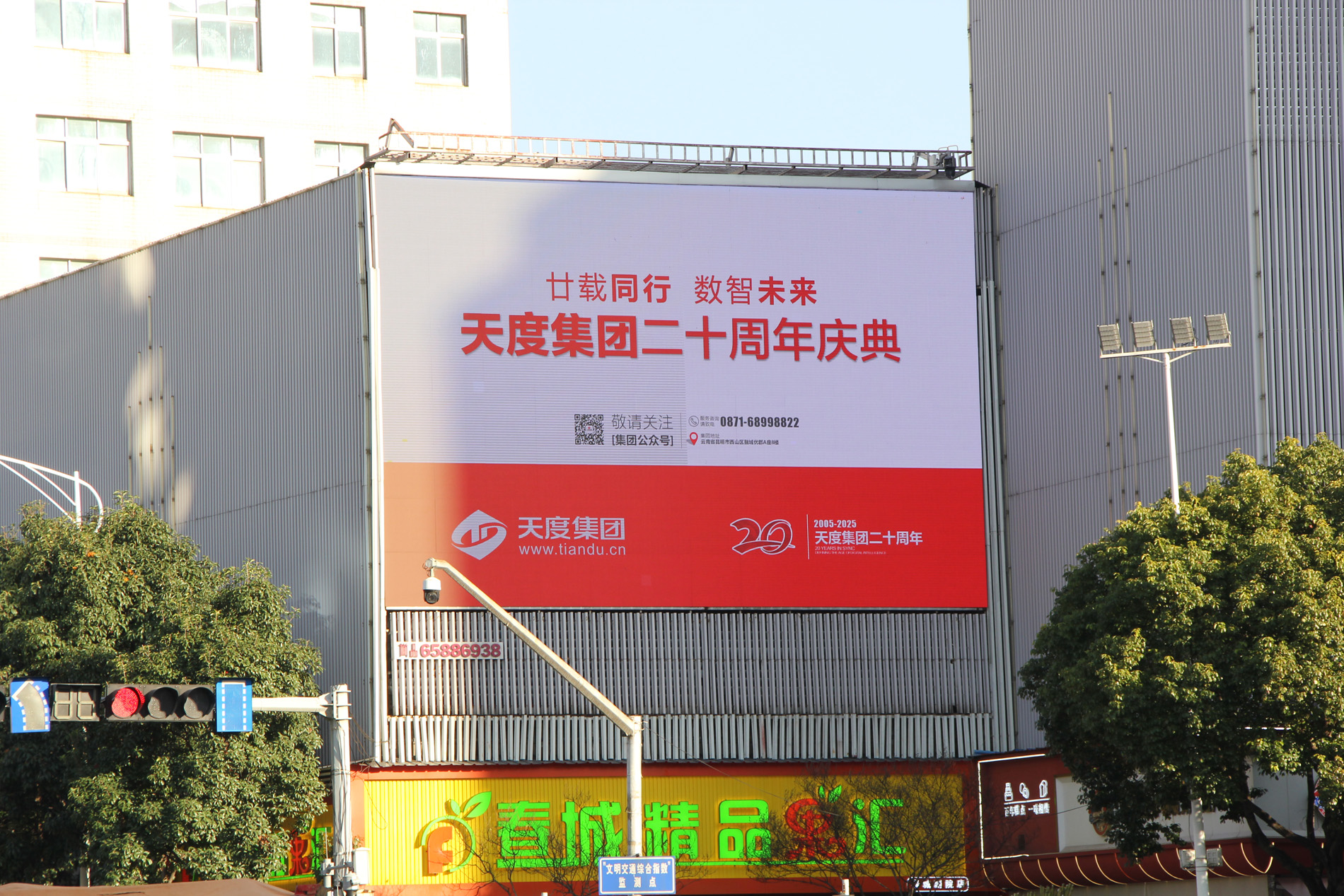 慶典啟幕前,天度集團20周年慶典宣傳已點亮昆明全城。從市中心到各區(qū)域地標,十余塊LED大屏同步綻放,將慶典的喜悅傳遞到城市的每個角落,讓所有關心支持天度的朋友們共同見證這一重要時刻。